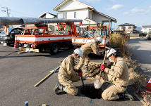 アースオーガーやバックホーなど重機による掘削作業では、既設の水道管やガス管等の配管類を破損してしまう懸念があります。埋設物の多い場所での掘削では作業速度は遅くなり、最終的には人力による手作業に頼る事が多くなります。
